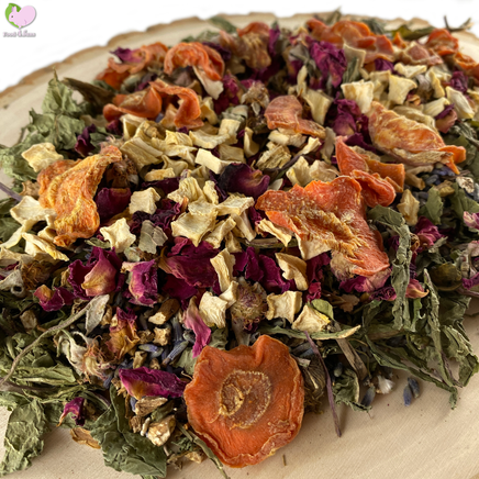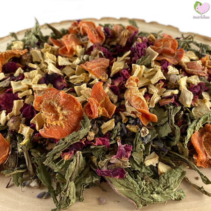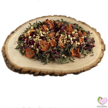Please note that some of these herbs like dandelions, red clover and nettles contain a larger amount of calcium compared to other herbs or flowers. In their fresh state some of these herbs may be diuretic but if you have an animal with bladder stones or issues with bladder sludge we suggest to consult your vet before offering these as treats.