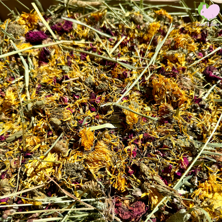 Please note that some of these herbs like dandelions, red clover and nettles contain a larger amount of calcium compared to other herbs or flowers. In their fresh state some of these herbs may be diuretic but if you have an animal with bladder stones or issues with bladder sludge we suggest to consult your vet before offering these as treats.