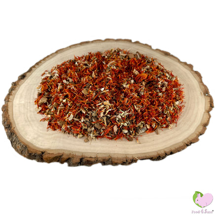 Please note that some of these herbs like dandelions, red clover and nettles contain a larger amount of calcium compared to other herbs or flowers. In their fresh state some of these herbs may be diuretic but if you have an animal with bladder stones or issues with bladder sludge we suggest to consult your vet before offering these as treats.