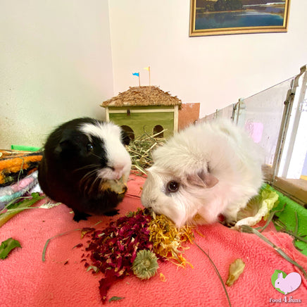 Please note that some of these herbs like dandelions, red clover and nettles contain a larger amount of calcium compared to other herbs or flowers. In their fresh state some of these herbs may be diuretic but if you have an animal with bladder stones or issues with bladder sludge we suggest to consult your vet before offering these as treats.